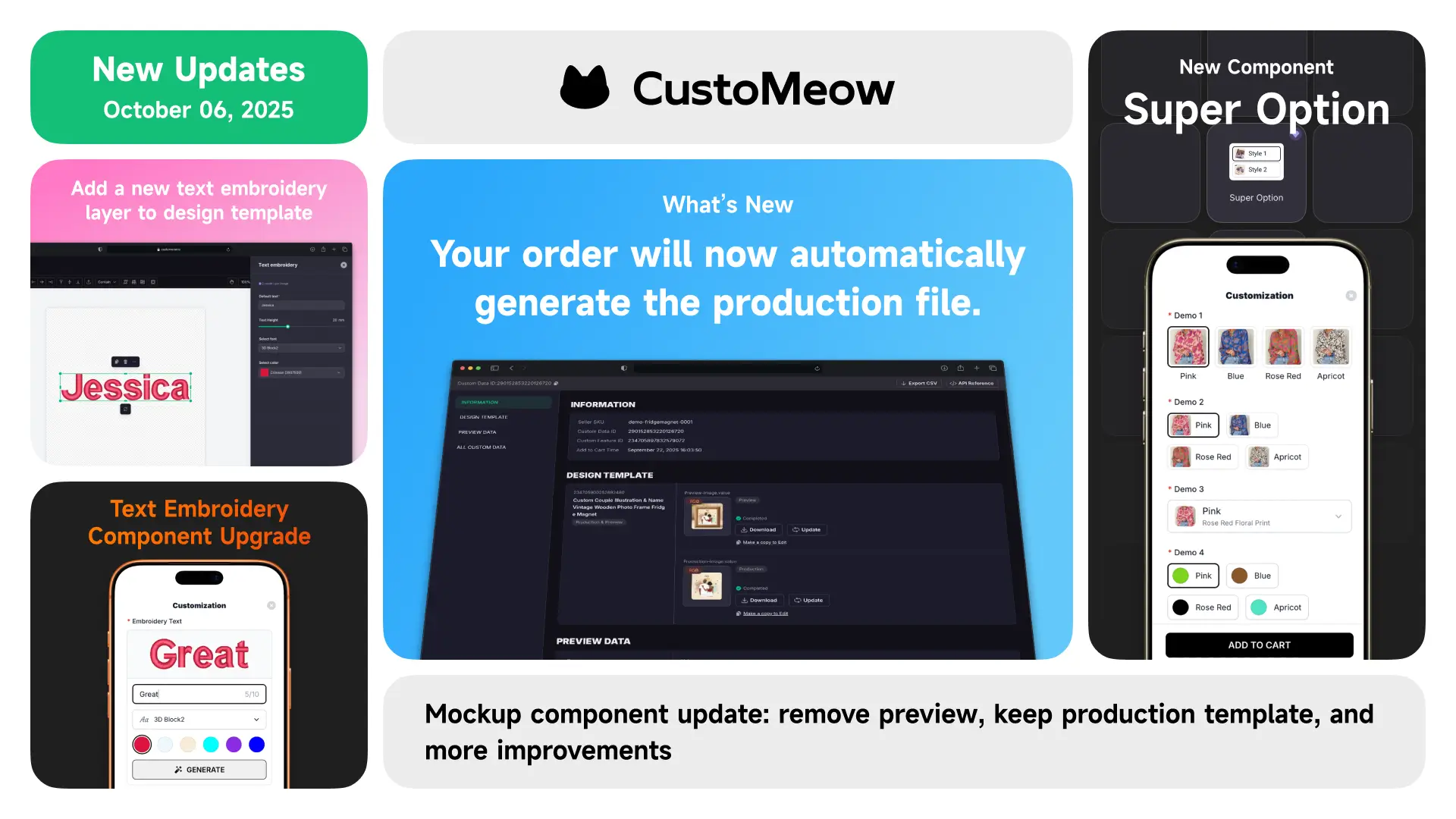 The mockup preview has been removed from the customization feature. Your production design templates will now be retained, so you no longer need to reselect them.