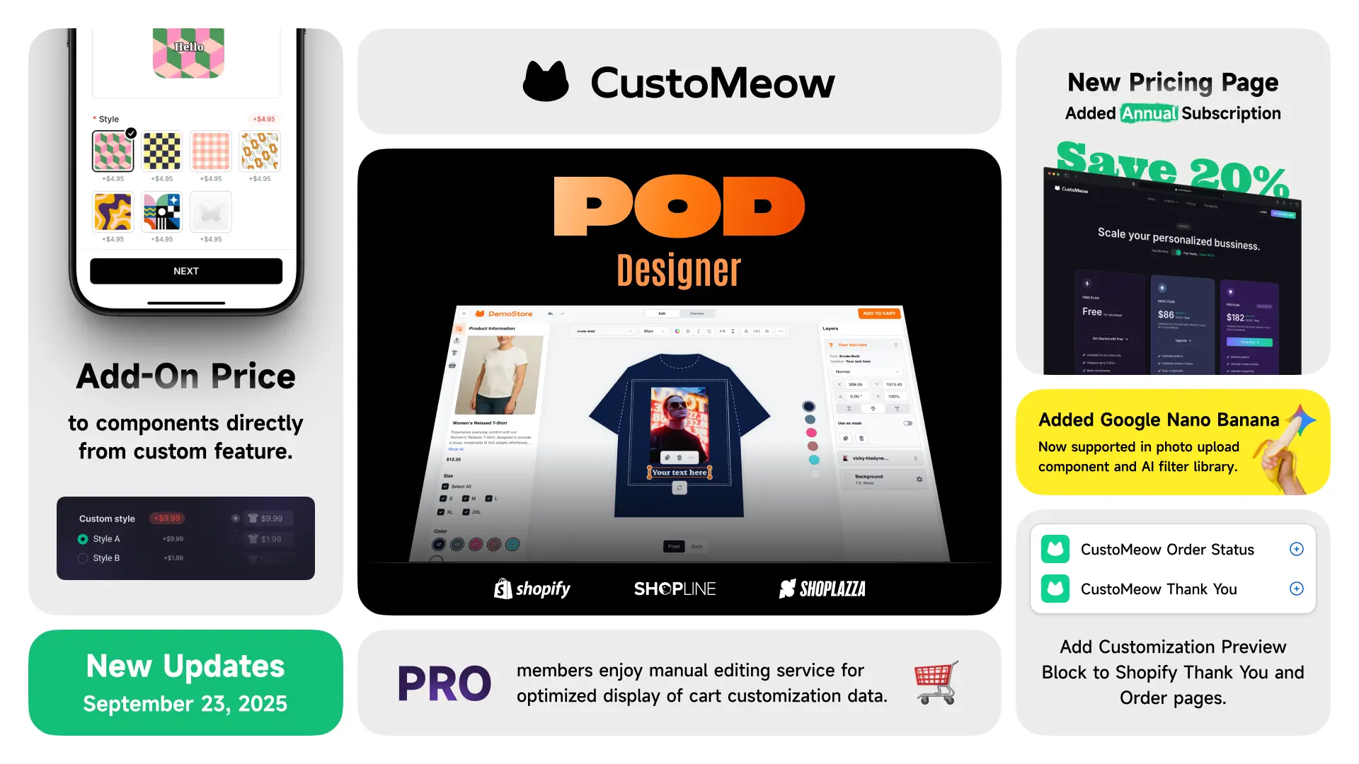 POD Designer supports Shopify, SHOPLINE, and Shoplazza.