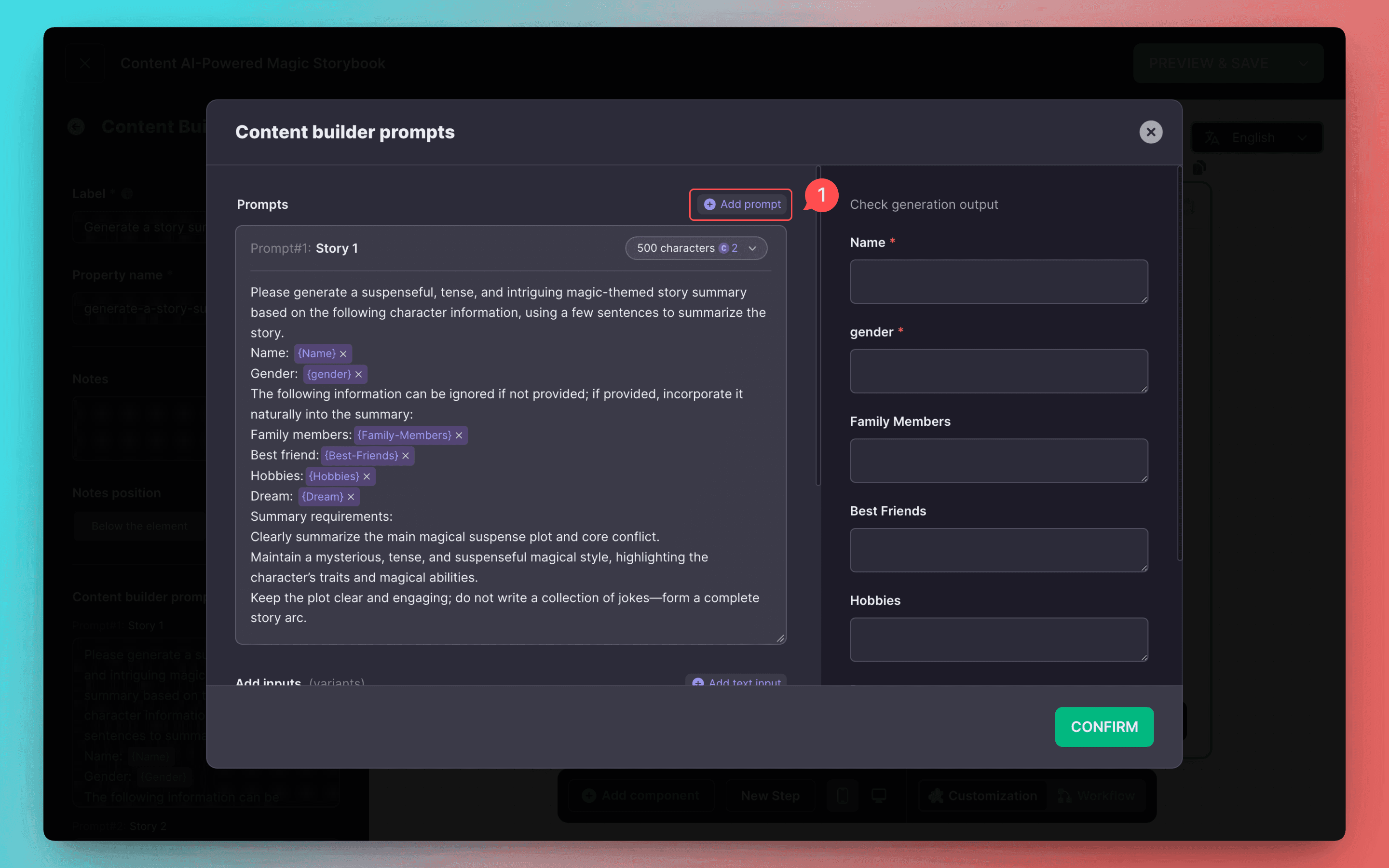 Prompts allow adding variables, enabling users to replace certain keywords to generate personalized content.