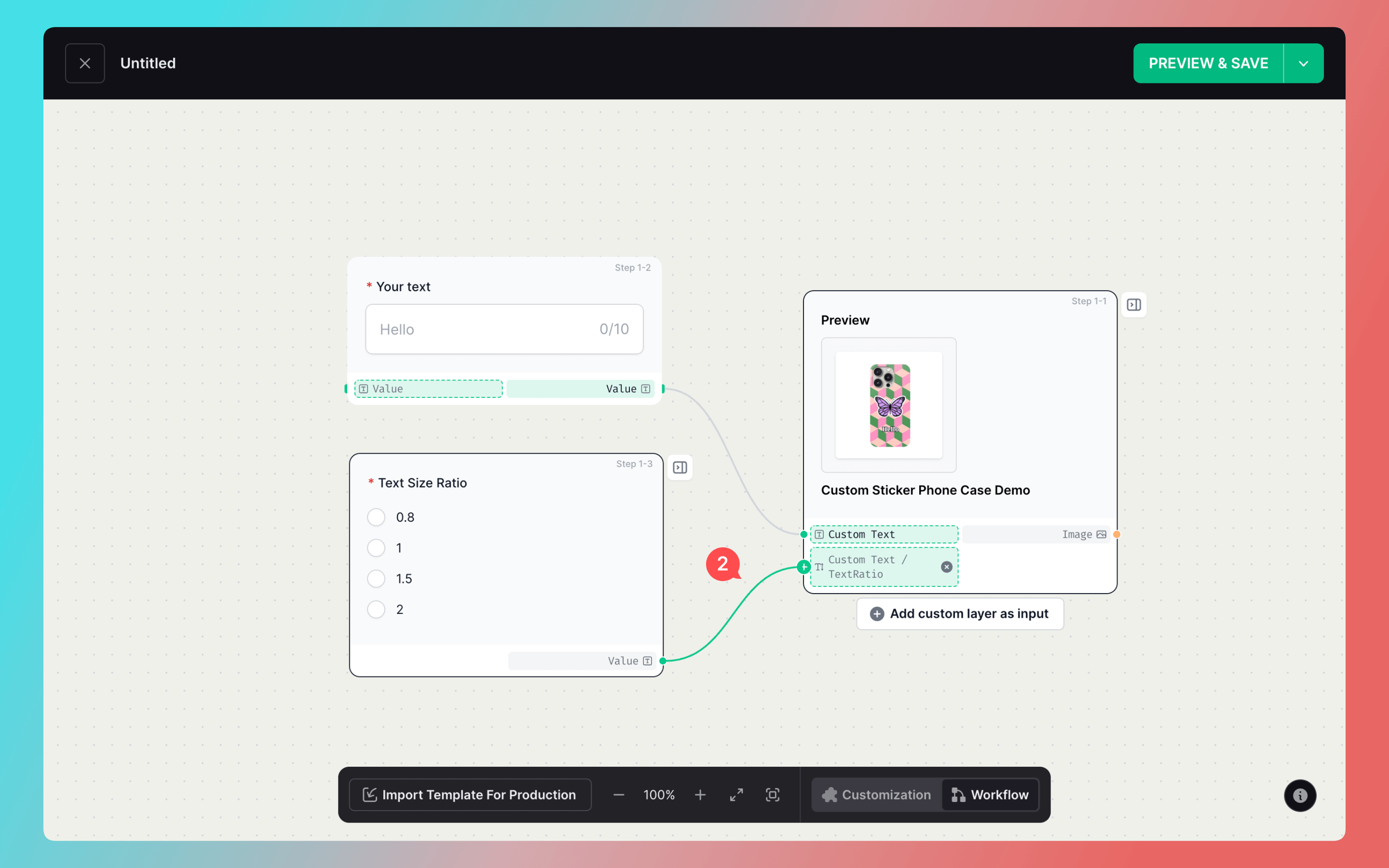 In the Workflow, select the text ratio data source for the text layer and connect it to the configured ratio selection component.