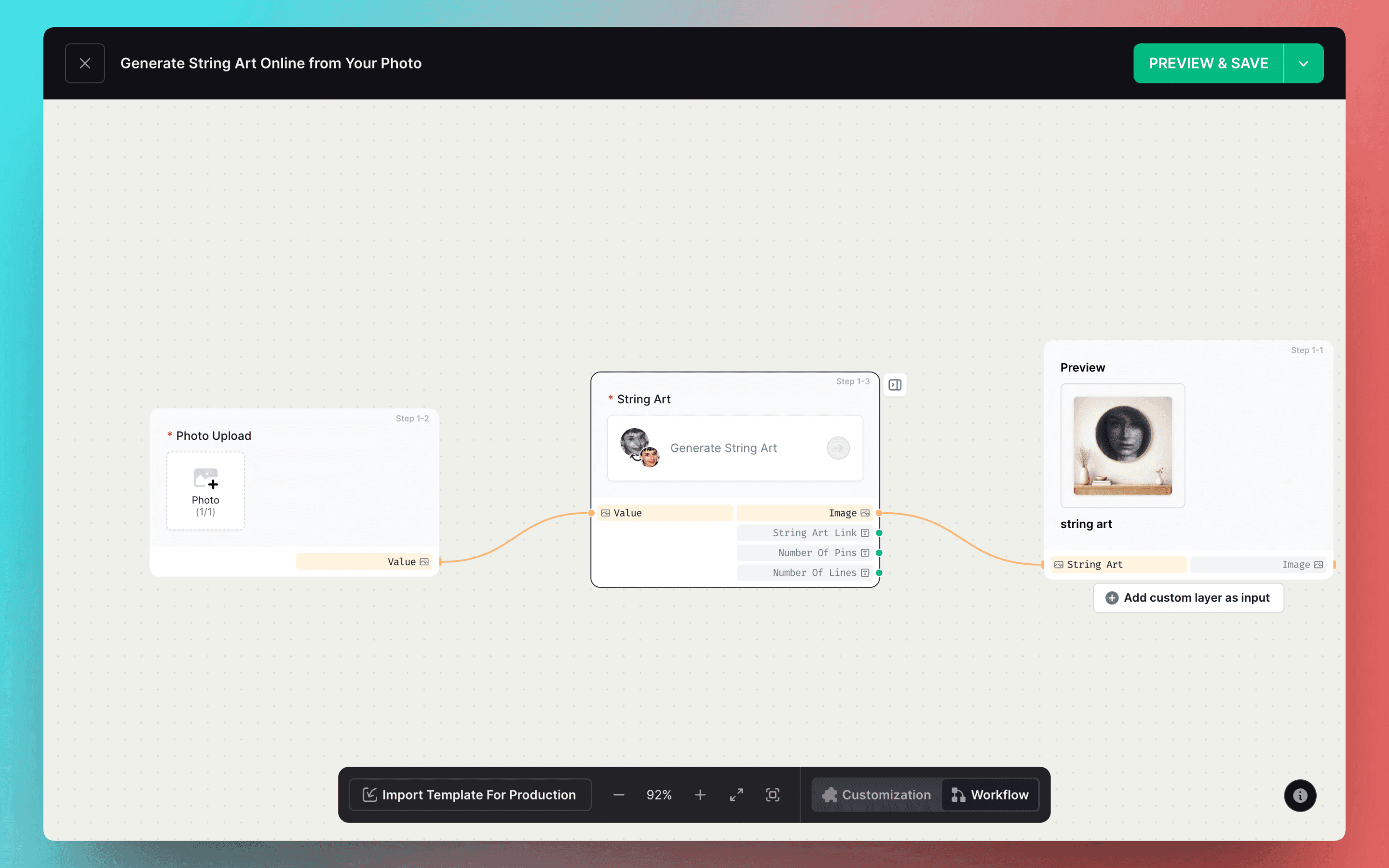 The String Art supports automatic online tutorial generation. Each String Art result automatically generates a tutorial link, providing step-by-step guidance for every string connection.