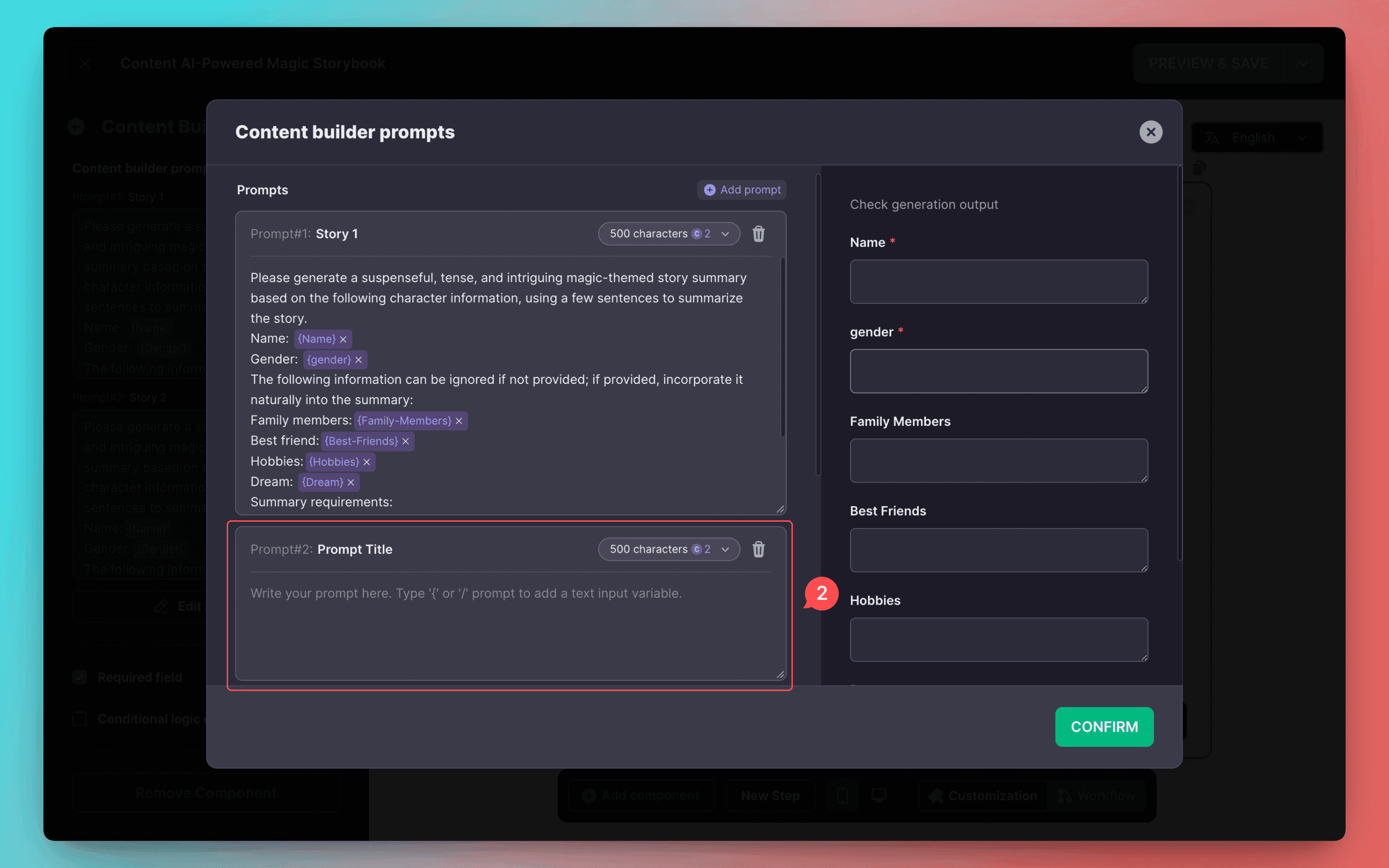 If you want users to generate multiple contents and choose one as customization, you can add multiple prompts