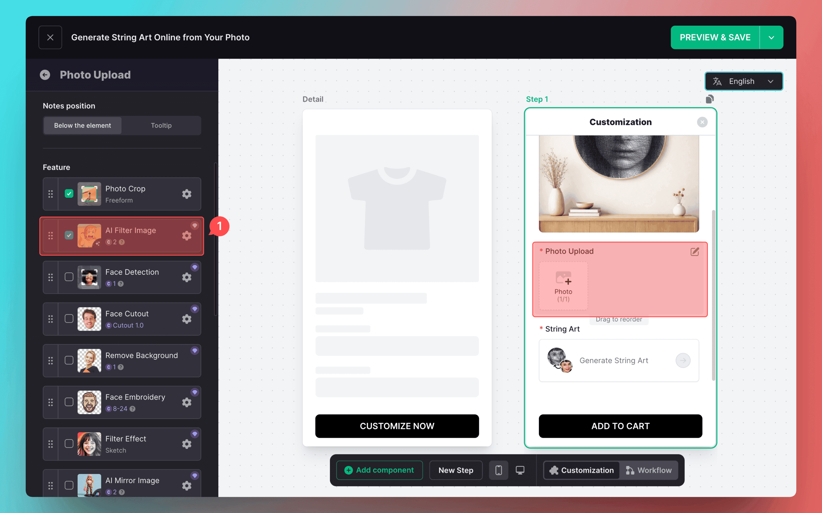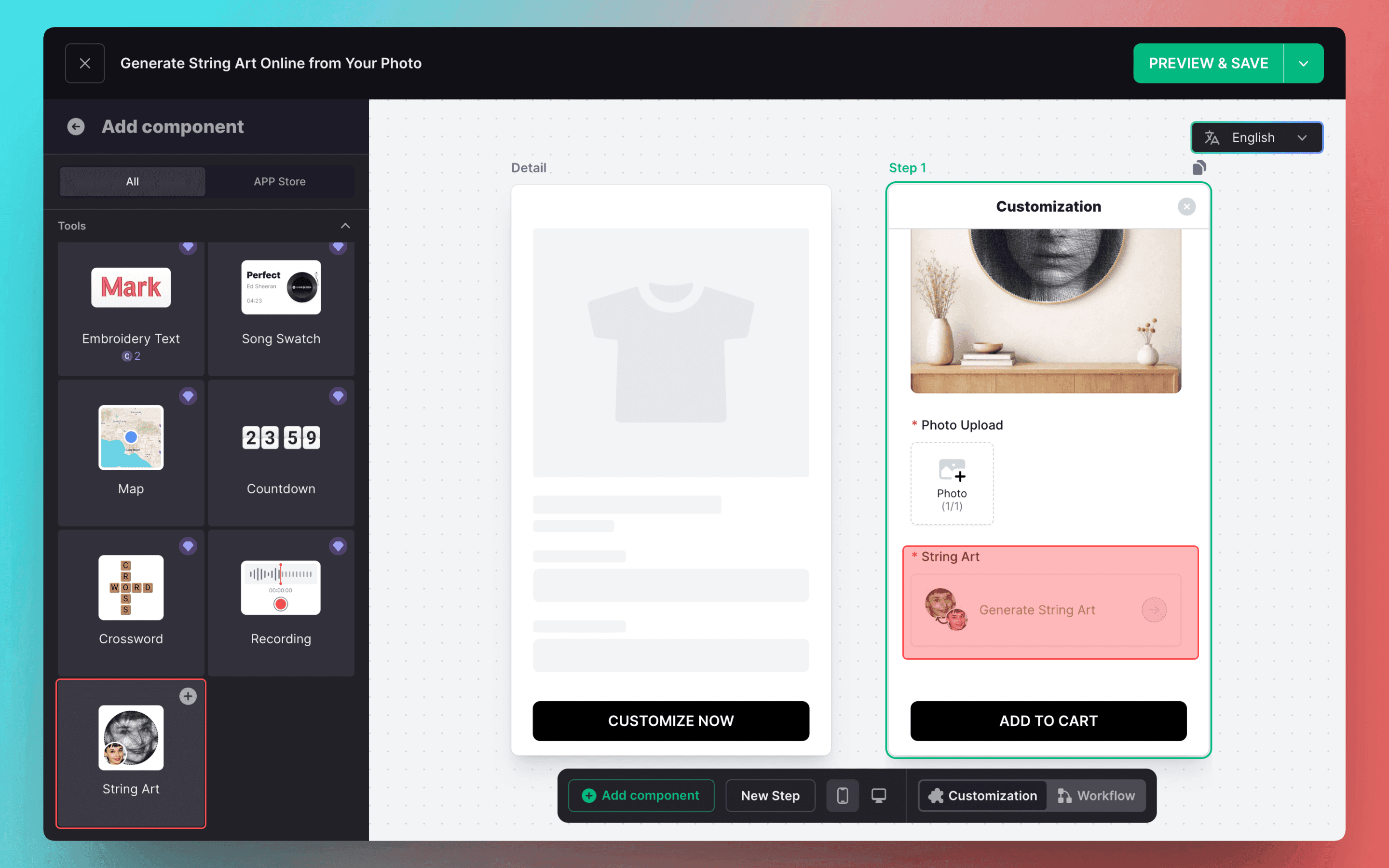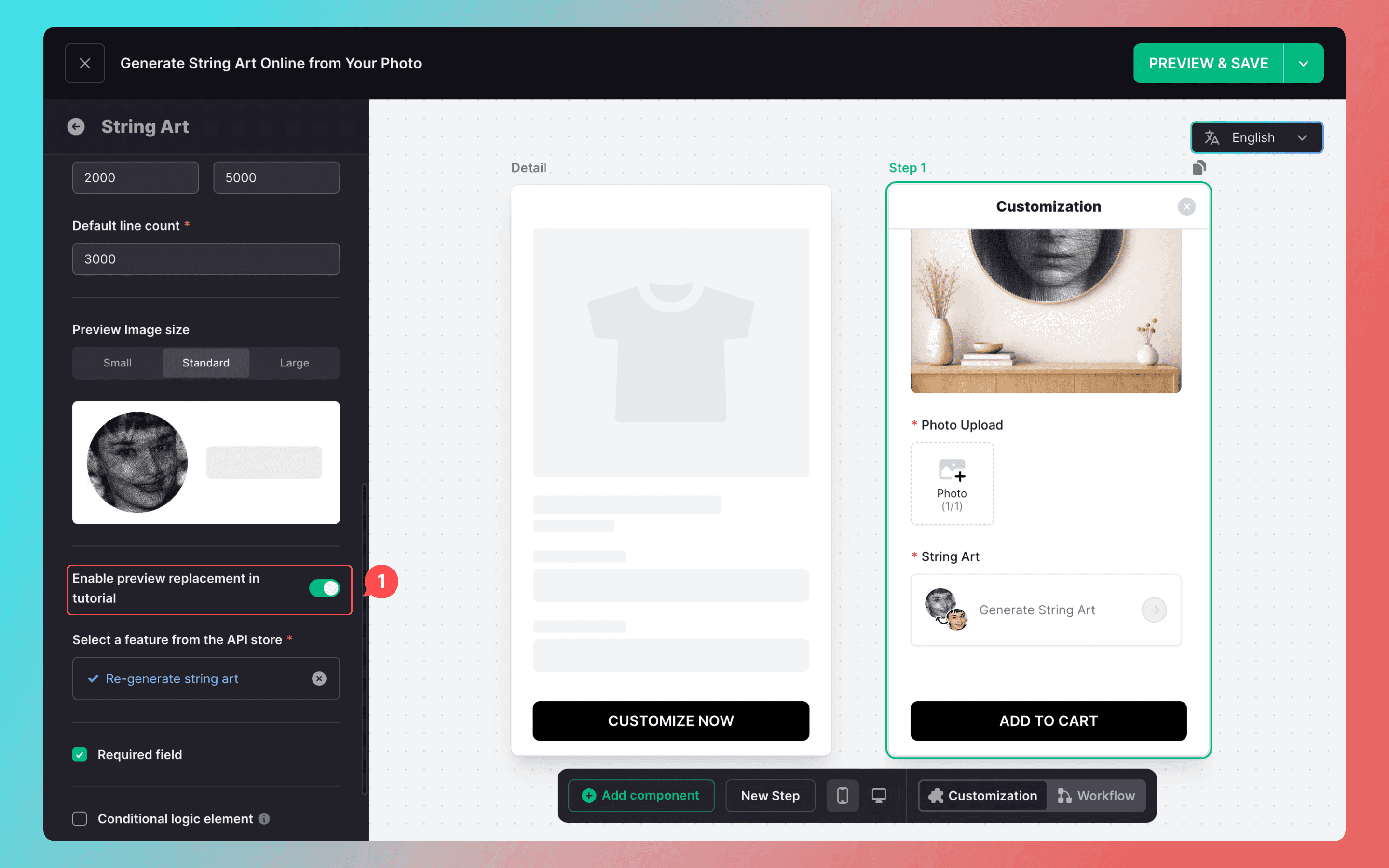 Each String Art component automatically generates a tutorial link in the customization information. Merchants can access and use it directly.
