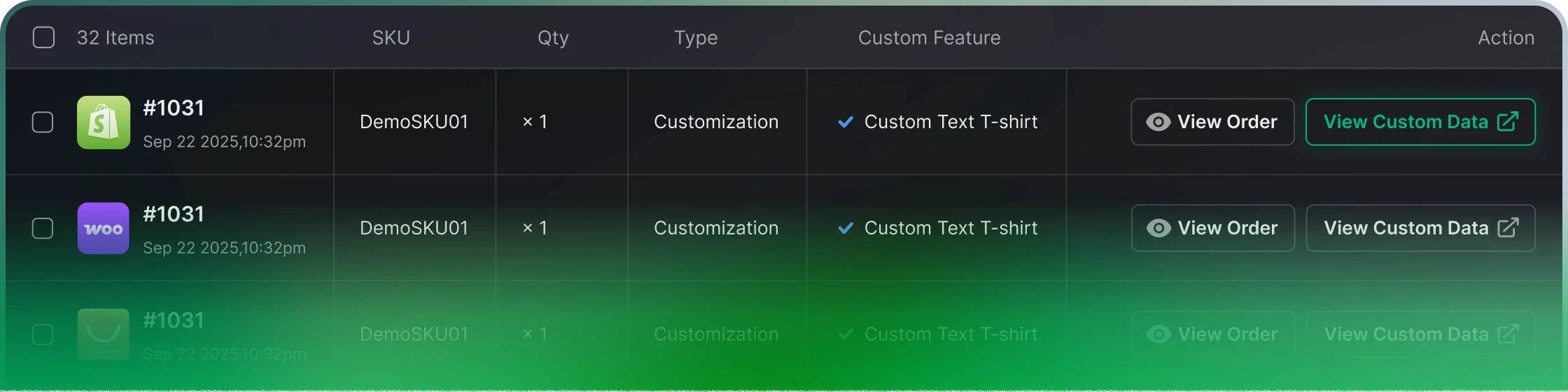 After your customer places an order, the platform (Shopify, SHOPLINE, etc.) will automatically push the order to CustoMeow. If the order hasn’t synced, you can also click the ‘Update’ button in the Orders section to manually sync it.