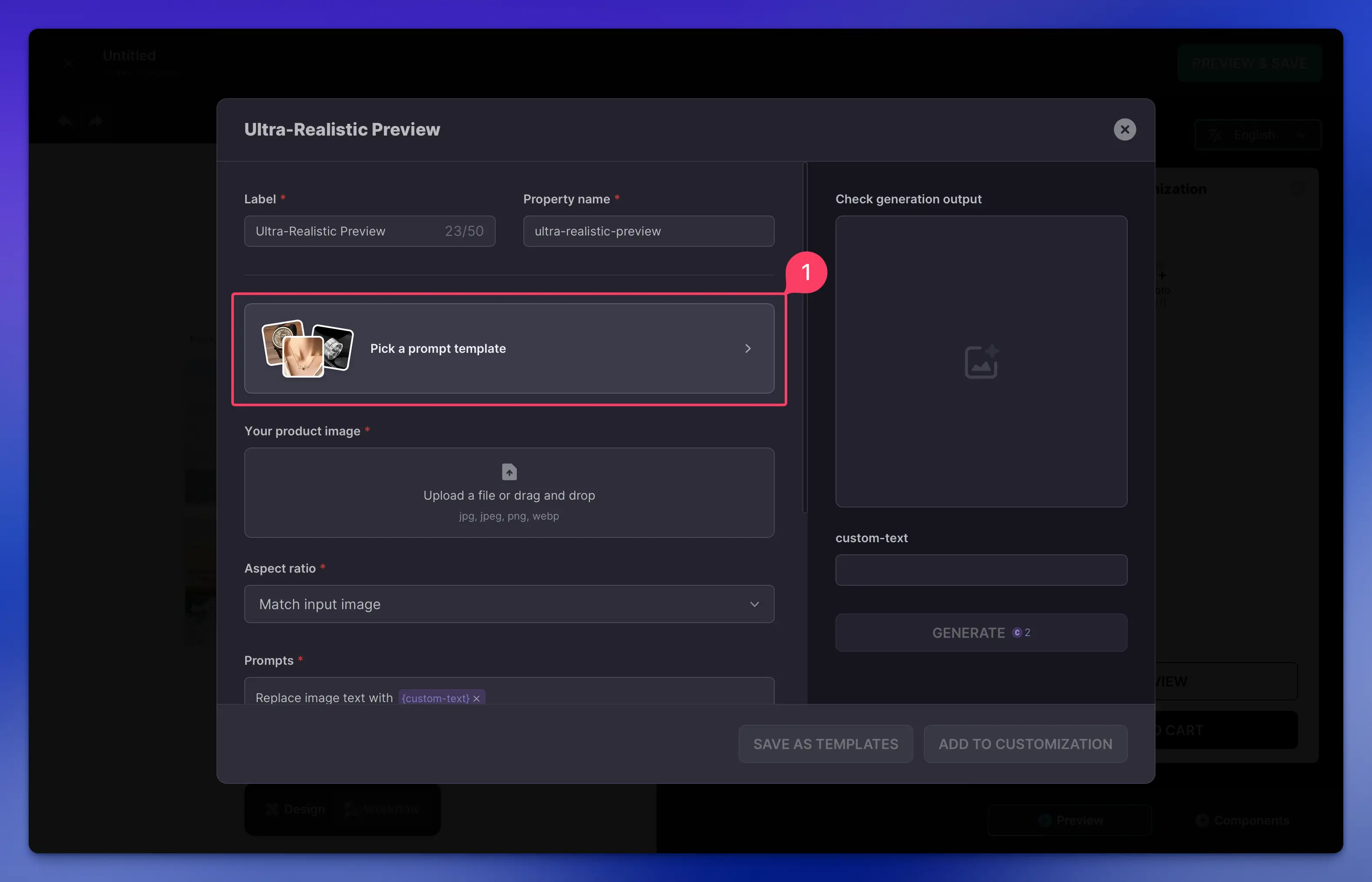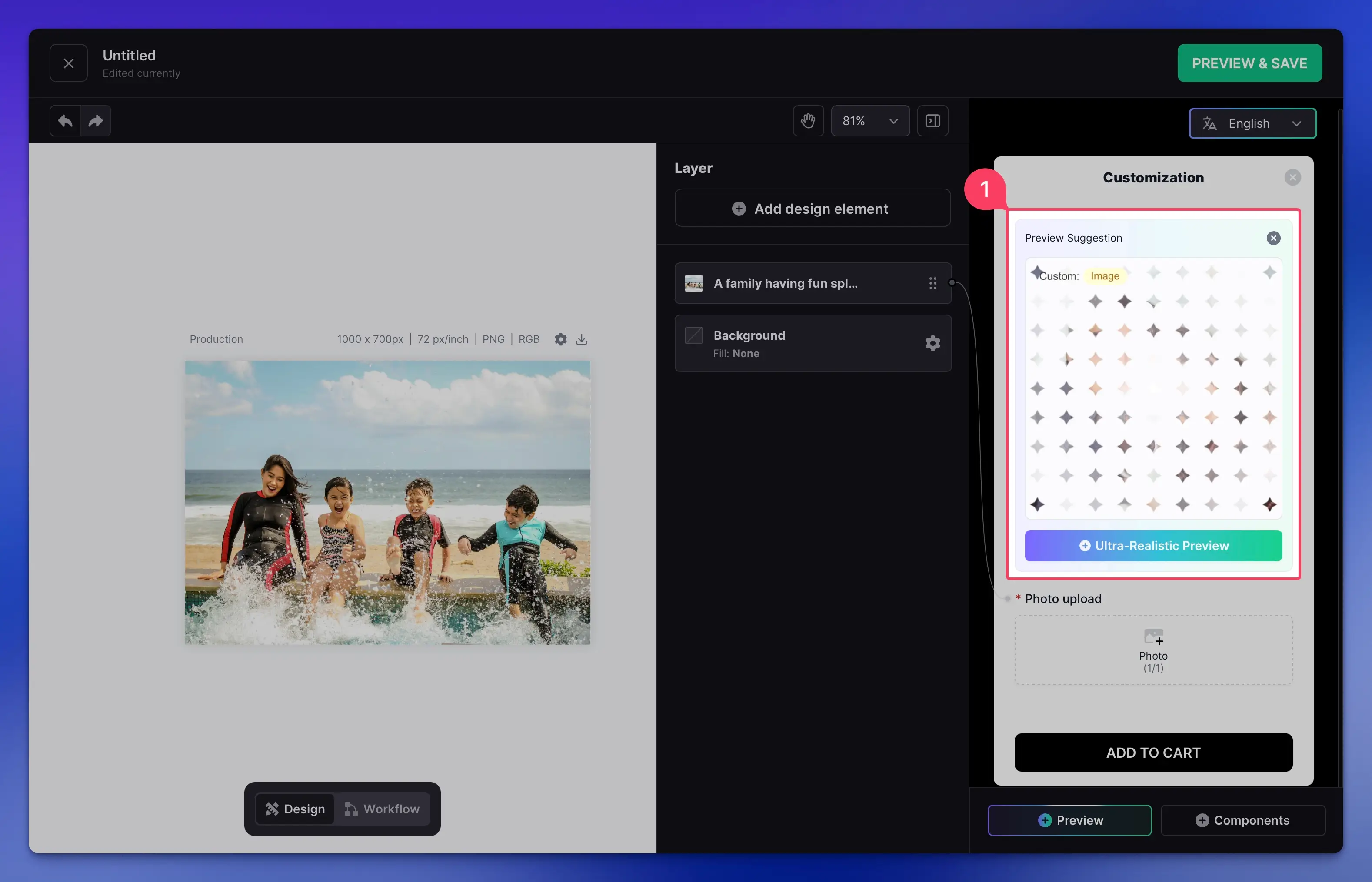 配置你的超逼真预览,这里你要上传你的预览参考图,并且通过提示词来控制想要实现的预览效果。
