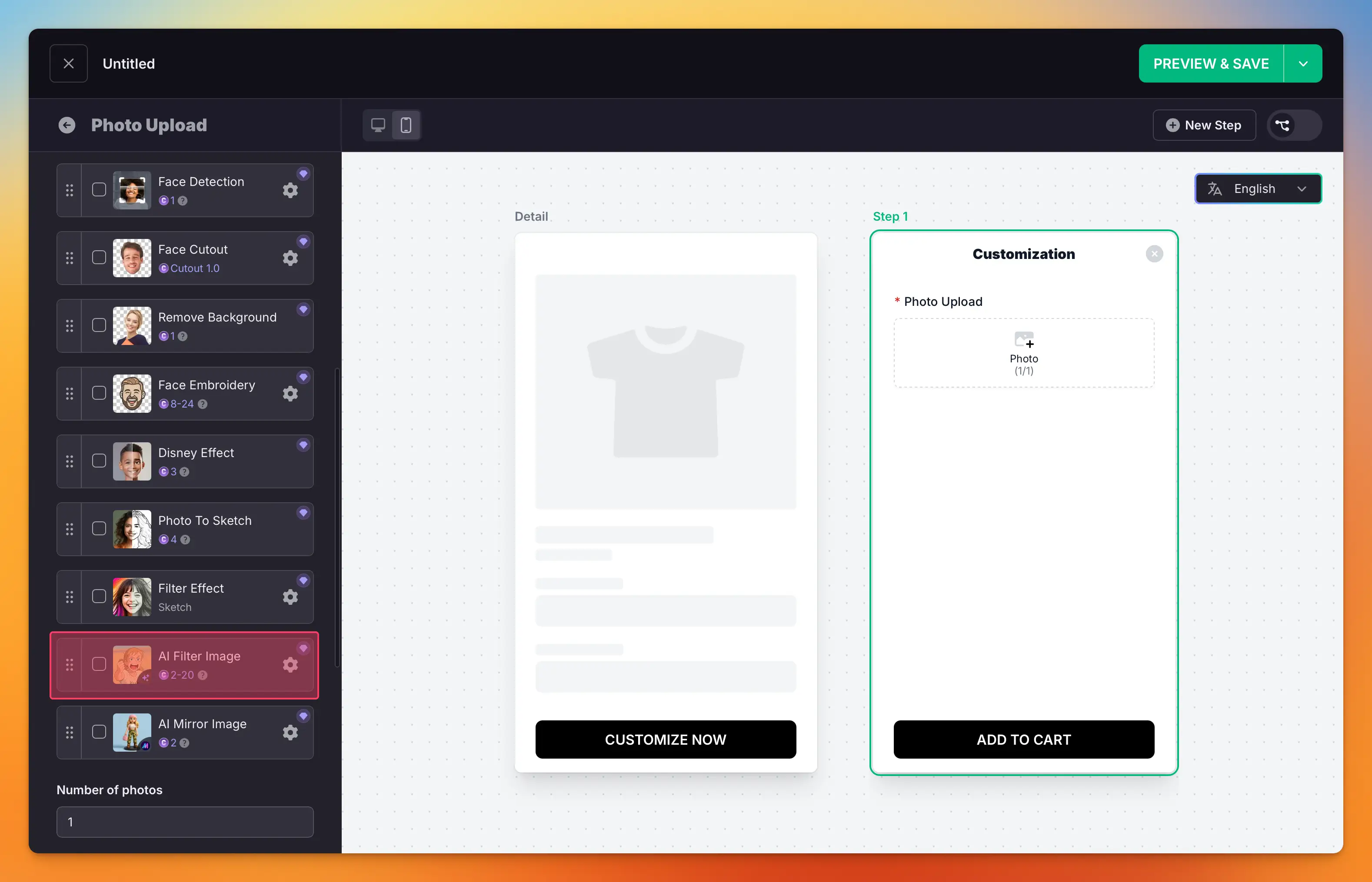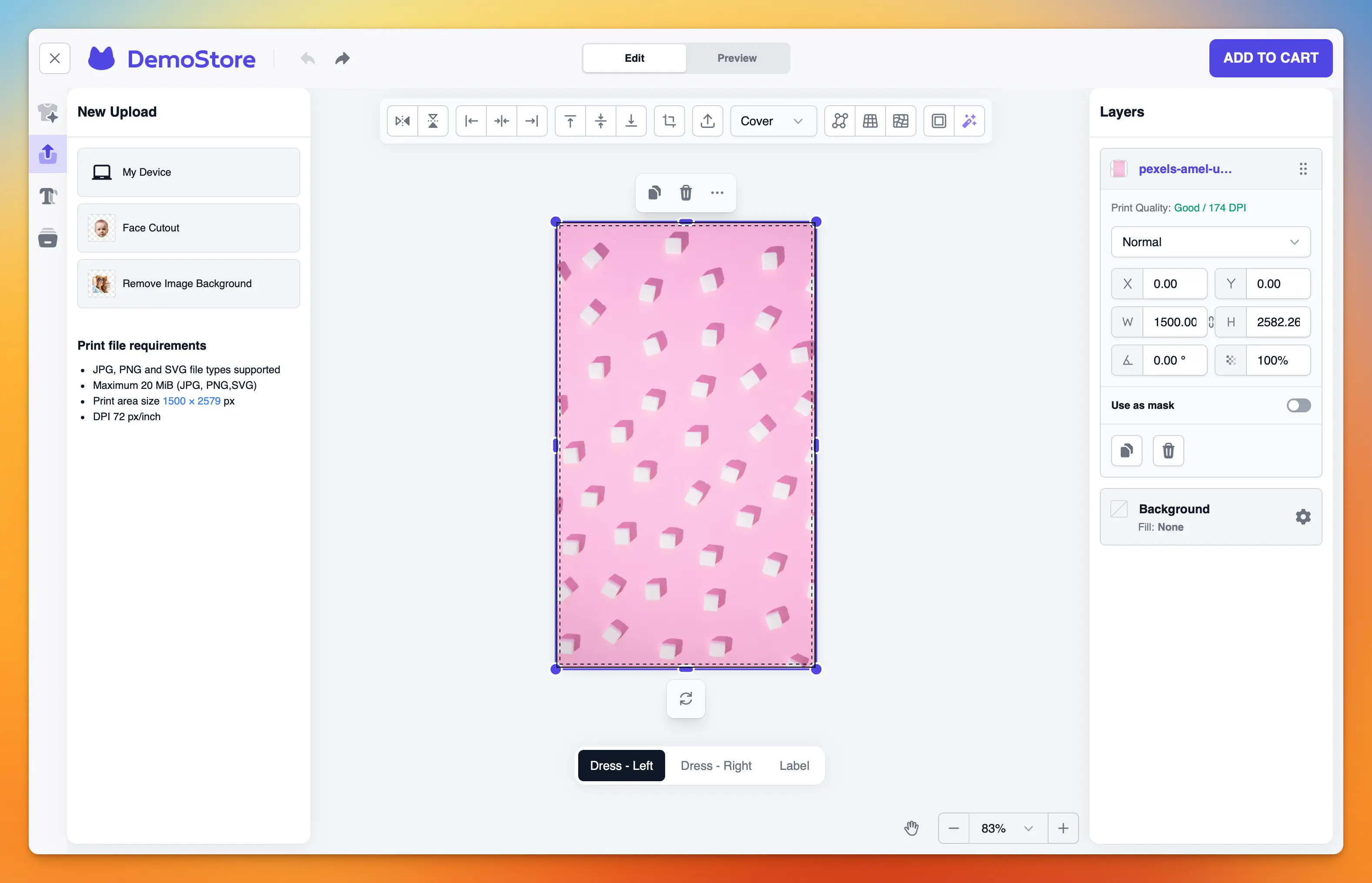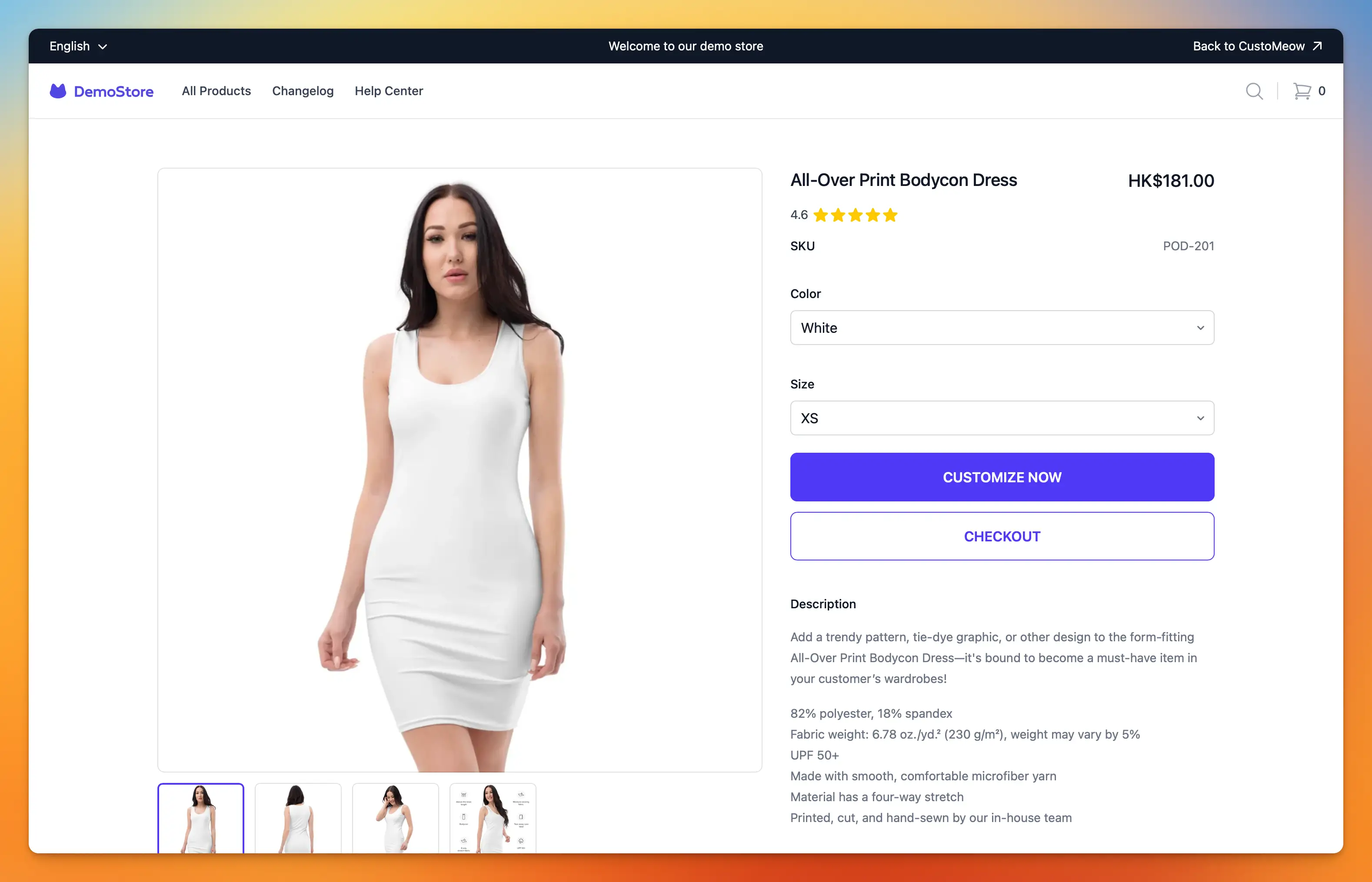 点击定制按钮或快速结账按钮将打开POD设计师。