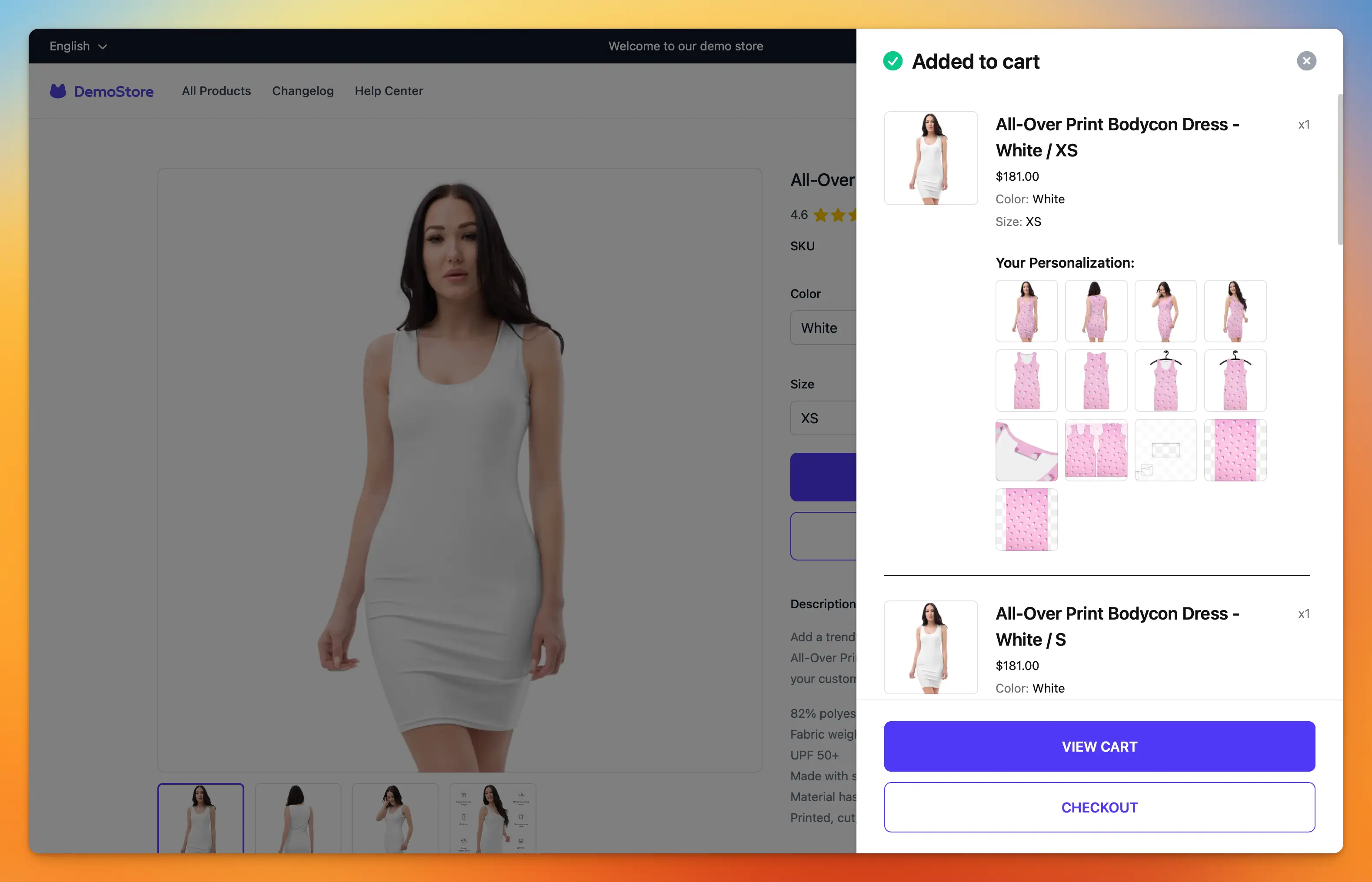 当您的客户完成设计并点击加入购物车按钮时,所有具有选定属性的产品将被添加到购物车中。
